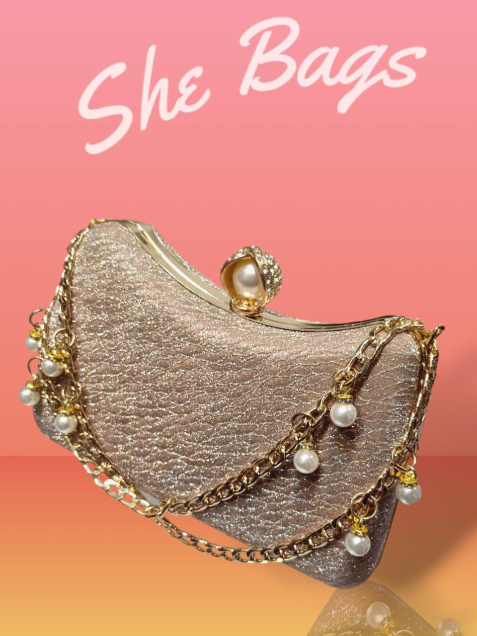 The radiant golden finish makes it perfect for weddings, parties, dinners, and evening events, while its compact shape comfortably holds your essentials such as phone, cards, and cash. Lightweight and stylish, this fancy clutch is a must-have statement piece for every modern woman’s wardrobe.